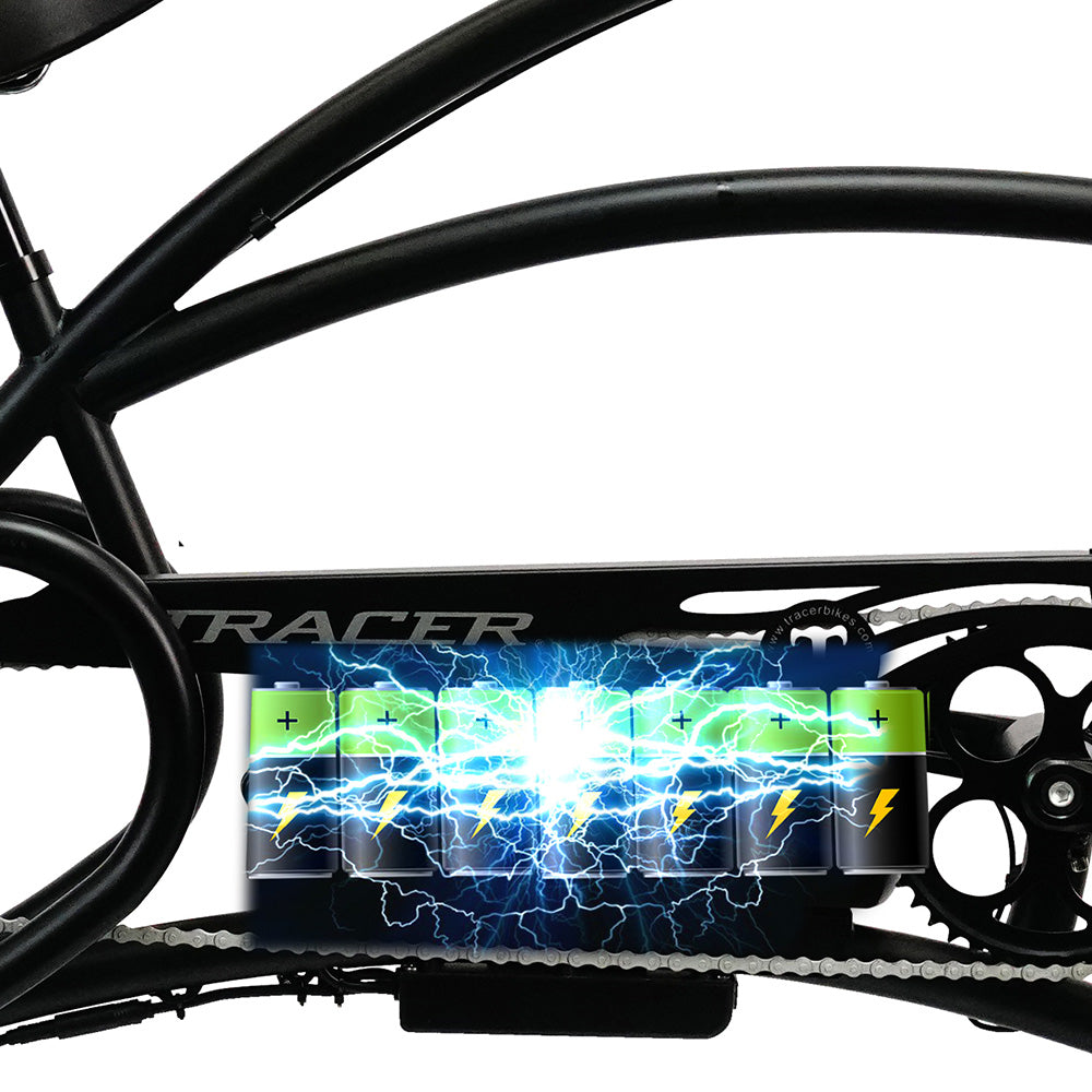 The electric Tracer beyond Pro's elegant, classic and ergonomically designed frame makes riding more comfortable and effortless. The ultra-comfortable ergonomic frame design keeps you in an upright, relaxed riding position, reducing stress on your back, hips, shoulders and knees. If you haven't ridden a bike in a long time, the Tracer beyond Pro is perfect for you. The frame design has the advantages of long wheelbase, comfort, large cargo capacity, and easy entry and exit. It is a fashionable bicycle choice suitable for leisure riding, urban commuting, and shopping. The unique appearance makes it a popular bicycle in cities and coastal areas, making it a beautiful sight. The forward pedaling design keeps you close to the ground while still providing ample leg extension while pedaling. The low position to the ground makes parking easy and safe, reducing the risk of tipping over and making it easy to park with your feet flat on the ground.